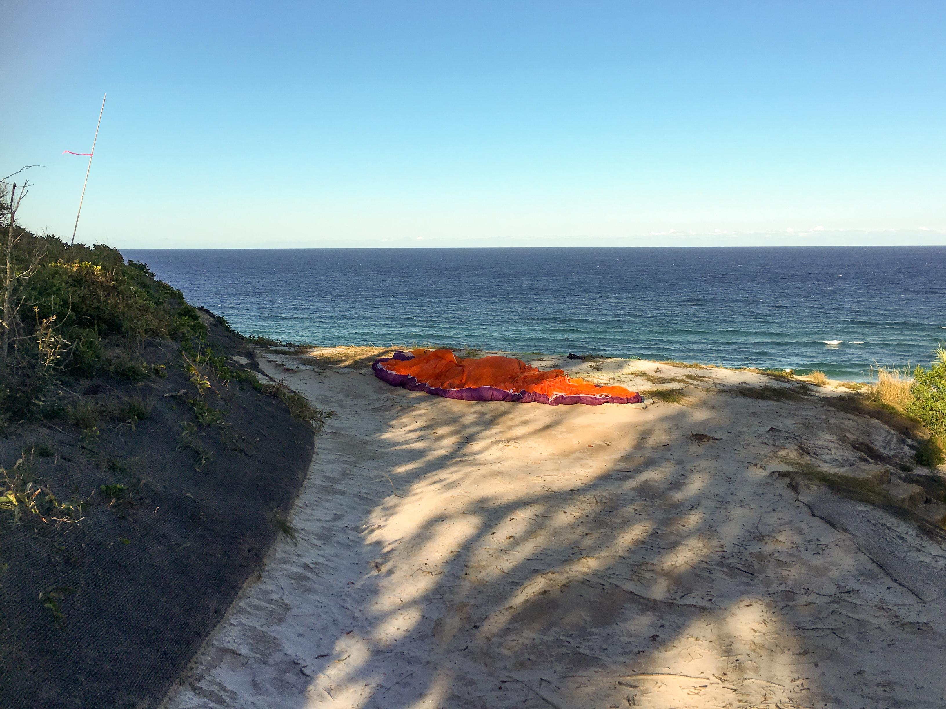 Wichtig zu wissen ist, dass im australischen Herbst und Winter vor allem West- bis Südostwind vorherrscht. Um in Rainbow Beach zu fliegen, braucht es jedoch Wind aus Nordosten. Wer sicher zum Fliegen kommen will, sucht sich deshalb eine andere Jahreszeit aus oder bringt viel Geduld mit. Ich hatte nach einer mehrtägigen West-/Südwindlage das Glück, bei Südsüdost am Startplatz Teewah zu stehen.